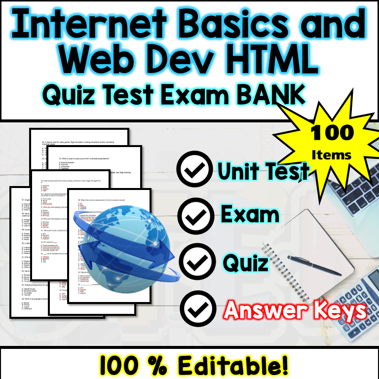 Internet Basics and Web Development HTML Exam Bank - Test and Quiz Questions Editable
