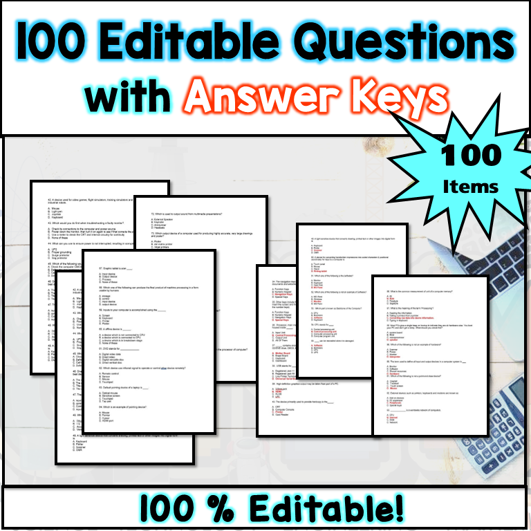 These 100 multiple choice questions test bank is complete and can help your students to remember, understand, apply, analyze and evaluate.